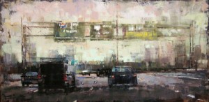 Oil and Encaustic on Canvas Framed, 25" x 49" $3300