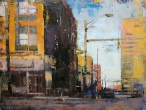 Primarily a landscape painter, Butler chooses to represent the memory of a place rather than depict a distinct location at a specific time. By painting the recollection of a setting, Butler’s paintings seem familiar while their source remains unknown. Butler’s current work is a mixture of oil paint and encaustic painting techniques. Encaustic involves the mixing of melted wax (in Curt’s case, beeswax) with oil paint to create a pliable, textured surface. This technique allows Butler to carve into the painting’s surface to expose underlying layers of color.