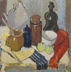 "Still Life with Table Objects" Oil on Board Framed, 17" x 19.5" $800