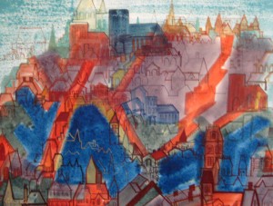 "Paris Streetscape" Watercolor on paper 19” x 25” image size Framed size 28.5” x 34.5” Signed lower left *Chicago WPA sculptor who switched to watercolor and oils after WW II; all Loeb works shown on this site are from 1949-1951 $750