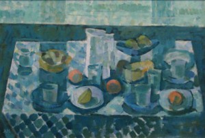 "Still Life with Table Objects" Oil on Canvas Framed, 28" x 32" $800