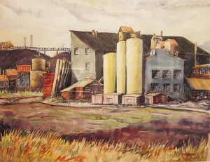 "Industrial Scene" Watercolor on Paper Framed, 29" x 33" $950